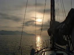 朝5時前に眼を覚ますと、空には明るい光が差しており、また海も静かな様相を見せていた。