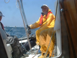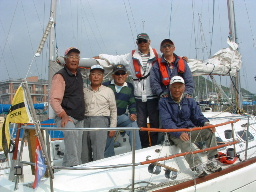 港外に出ると西寄りの風3〜4m/sが吹いており、このまま行けば機走でノンビリ葉山に行けると思った。 ・7:00に爪木崎を過ぎ、葉山に針路を取ると風は期待に反して北北東(葉山方向からの風)の風が吹いていた。 7:40ころから風速が6〜8m/sに上がり、波も大きくなって飛沫を被り始めた。 皆直ぐにオイルスキンを着用してスプレーに対処した。出港時には弱い日差しが出ていたが、次第に雲に隠れ肌寒さが増してきた。 8:15に稲取沖0.5NMを通過。9:50に城之崎沖500mを通り、名物の吊橋を観光客が多数渡っているのを望見した。 城之崎沖から徐徐に伊豆半島から離れ始め、川奈の灯台を遠く見ながら伊豆半島に別れを告げた。 ・10時頃から風が落ち、波も小さくなり飛沫も被らなくなった。皆オイルスキンを脱ぎ、 やや日差しが戻った暖かさにうたた寝時間となった。暫くはそのままノンビリと葉山を目指し機走した。 モヤが掛って視界が4〜5NMしかなく、伊豆半島から離れると初島がボンヤリと見え、 たまに通るヨットの帆影と熱海から大島に向かうジェット船が眼につくものであった。 ・12時頃には風も無く、海面はテレンコ。13:15頃江ノ島がボンヤリ見えてくる。 11:45頃イルカが3頭遠くの方でポチャンと波飛沫を上げていた。 ・何事もなく葉山に近付いて行ったが、風は徐徐に東から南に変わっていき、葉山沖では南5m/sが吹いていた。 葉山沖では学生のレースが開催されており、「あー!やはり葉山はヨットのメッカだ!」と痛感した。 高知までの海域でセーリング中のヨットはめったに見ることが無く、またデインギーがレースしている姿を眼にすることは無かった。 ・デインギーレースを眺めながら、本山さんの出迎えを受け15:10に葉山港に無事着岸した。 ポンツーンでは管理事務所の石川所長にも舫いを取って頂き、母港の皆さんの暖か差に感激しました。 24日間のクルージングは無事終了したが、風に恵まれ過ぎて忍耐のクルージングであった。 ただ、乗員の皆が元気に帰港出来たのが一番の喜びであった。 ご一緒頂きました皆様に感謝を申し上げます!! |